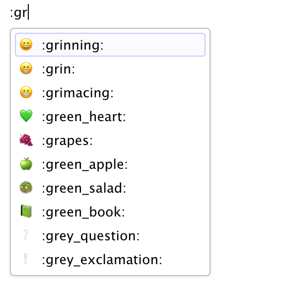 | Insert -> Special Characters -> Emoji… | Markdown Shortcut |